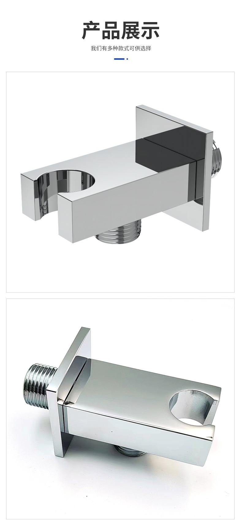 Reka Bentuk Moden & Bergaya:Mempunyai bentuk segi empat sama bersih dengan kemasan krom premium. Ia bukan sahaja berfungsi sebagai pemegang pancuran mandian yang berfungsi tetapi juga meningkatkan daya tarikan estetik keseluruhan ruang bilik mandi.