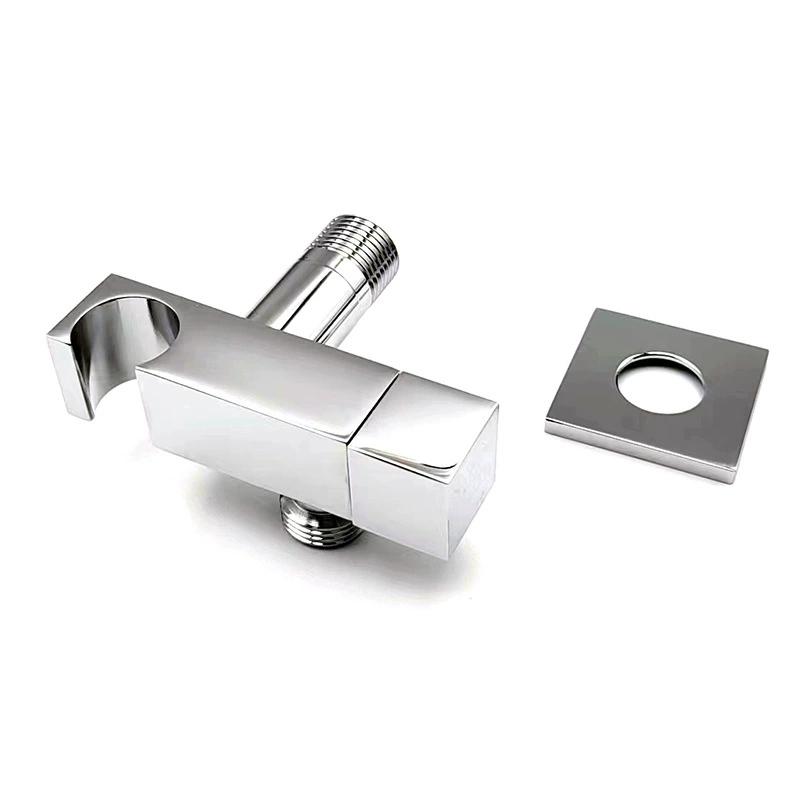 Injap Sudut Persegi Loyang Pepejal Tebal dengan Pemegang Pancuran Mandi, Injap Berhenti Lurus 1/2" untuk Semburan Bidet & Pancuran Pegang Tangan, Pemasangan Paip Bilik Mandi