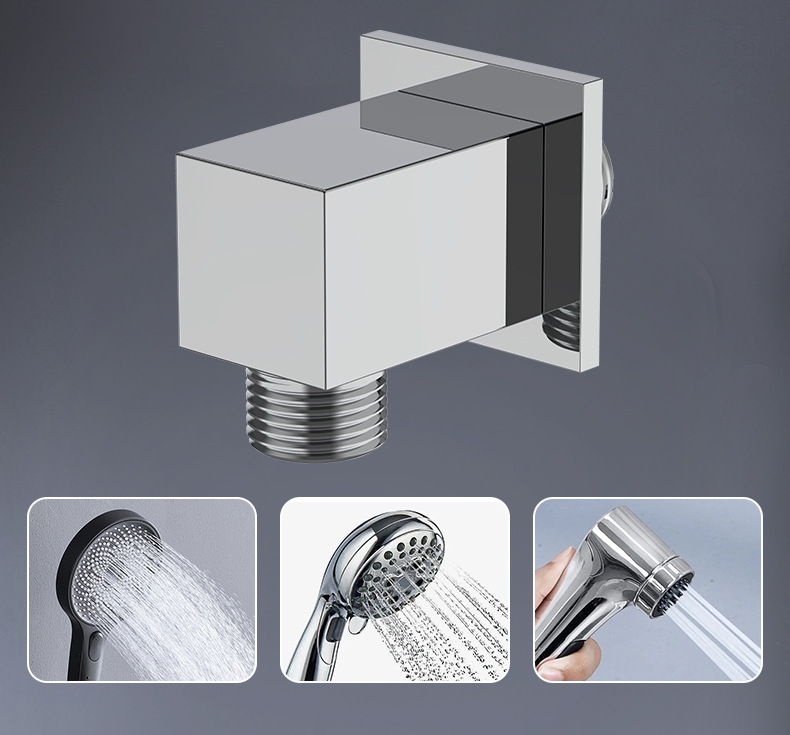 Pemegang pancuran mandian persegi tembaga ini ialah aksesori bilik mandi berbilang fungsi yang menyepadukan pendakap pancuran mandian dan fungsi saluran keluar air, direka khas untuk pemasangan tersembunyi pancuran mandian pegang tangan, dengan reka bentuk kiub minimalis moden.
